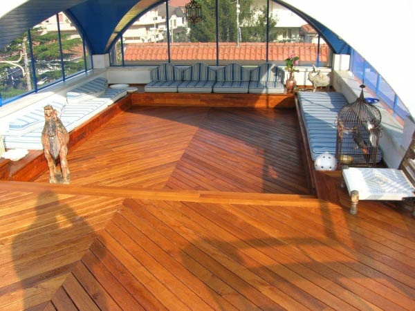 Per la realizzazione di questa particolare tipologia di parquet vengono utilizzati principalmente Teak, Ipè, Iroko, Angelim Amargoso, Cumarù. Grazie al trattamento preventivo di fabbrica questi materiali non necessitano di trattamenti post posa in opera e mantengono inalterate le loro caratteristiche estetiche e funzionali anche per 20 anni.